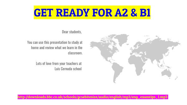 Dear students, You can use this presentation to study at home and review what we learn in the classroom. Lots of love from your teachers at Luis Cernuda school