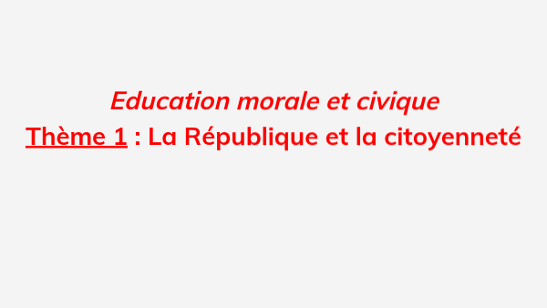 Education morale et civique Thème 1 : La République et la citoyenneté