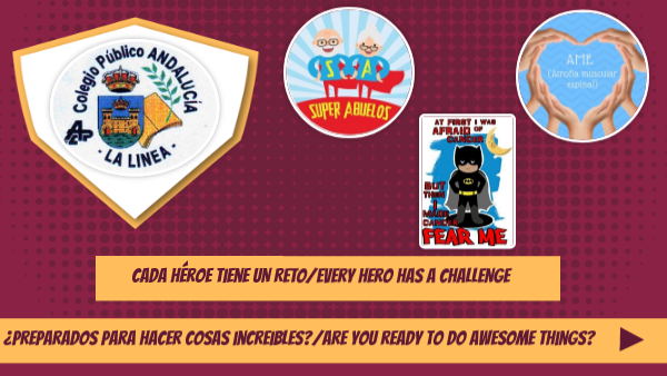 Bienvenido al super proyecto del CEPR Andalucía de La Línea de la Concepción (Cádiz).En nuestro cole sabemos que los niños son el futuro y que ellos cambiarán el mundo, pero... ¿Por qué esperar si pueden hacer algo grande hoy? Mira lo que estos super niños y niñas son capaces de hacer , y es que... "CADA HÉROE TIENE UN RETO"