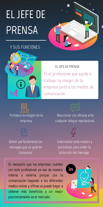 Es el profesional que ayuda a trabajar la imagen de la empresa junto a los medios de comunicación.