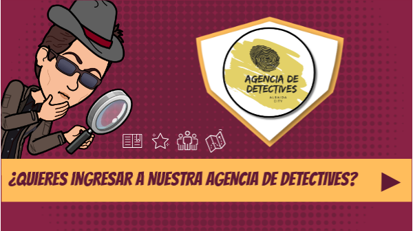 Bienvenidos a nuestra agencia de detectives. Entrar en ella es fácil pero permanecer en su equipo requiere un gran esfuerzo. Necesitamos AGENTES CON UN ALTO NIVEL DE COMPETENCIAS PARA PODER RESOLVER TODOS LOS CASOS QUE NOS ENCOMIENDAN A NIVEL MUNDIAL. Aquí sólo queremoS a los mejores