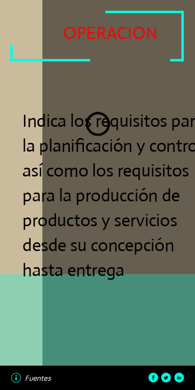 Indica los requisitos para la planificación y control; así como los requisitos para la producción de productos y servicios desde su concepción hasta entrega