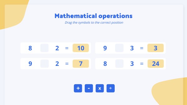 Perform calculations with ease using this free mathematical operations template. Perfect for interactive educational activities and didactic practices. Edit and customize according to your students' needs.
