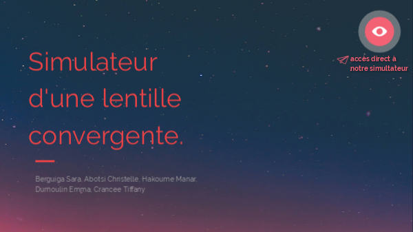 Le but de ce simulateur est de représenter une lentille convergente tout en pouvant modifier la taille de l'objet, la distance focale f' et la distance objet-lentille.