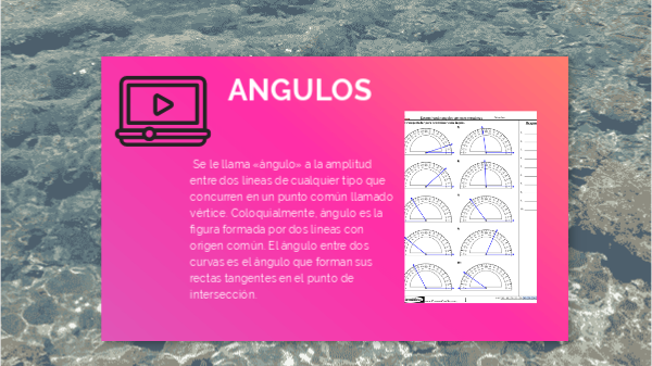 Se le llama «ángulo» a la amplitud entre dos líneas de cualquier tipo que concurren en un punto común llamado vértice. Coloquialmente, ángulo es la figura formada por dos líneas con origen común. El ángulo entre dos curvas es el ángulo que forman sus rectas tangentes en el punto de intersección.