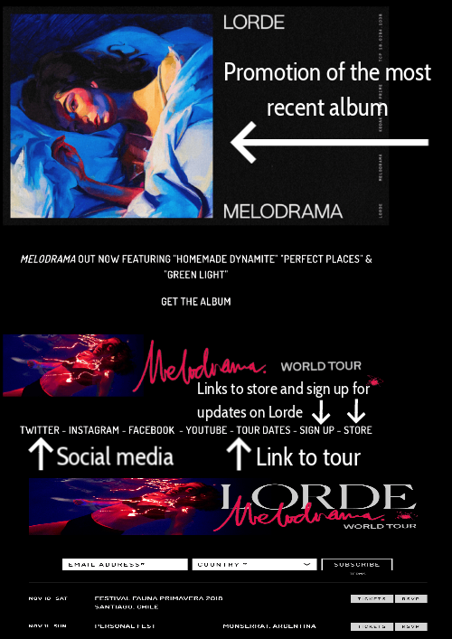 Links to store and sign up for updates on Lorde