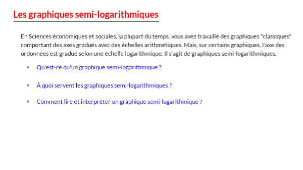 En Sciences économiques et sociales, la plupart du temps, vous avez travaillé des graphiques "classiques" comportant des axes gradués avec des échelles arithmétiques. Mais, sur certains graphiques, l'axe des ordonnées est gradué selon une échelle logarithmique. Il s'agit de graphiques semi-logarithmiques.