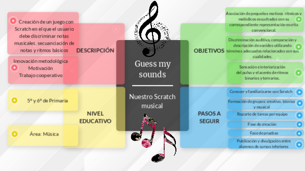 Creación de un juego con Scratch en el que el usuario debe discriminar notas musicales, secuanciación de notas y ritmos básicos