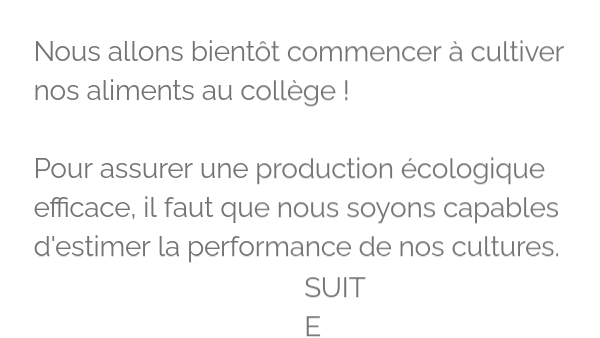 Nous allons bientôt commencer à cultiver nos aliments au collège ! Pour assurer une production écologique efficace, il faut que nous soyons capables d'estimer la performance de nos cultures.