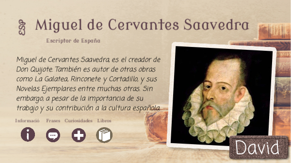 Miguel de Cervantes Saavedra, es el creador de Don Quijote. También es autor de otras obras como La Galatea, Rinconete y Cortadillo, y sus Novelas Ejemplares entre muchas otras. Sin embargo, a pesar de la importancia de su trabajo y su contribución a la cultura española.