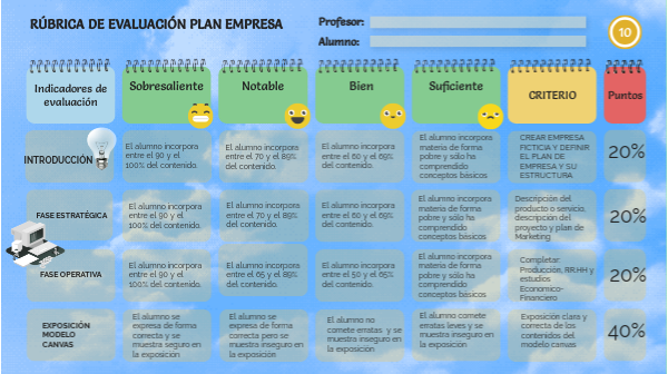 RÚBRICA DE EVALUACIÓN PLAN EMPRESA
