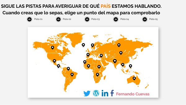 Juego ¿De qué país estamos hablando? Juego interactivo usando diversas pistas para tratar de averiguar de qué país estamos hablando