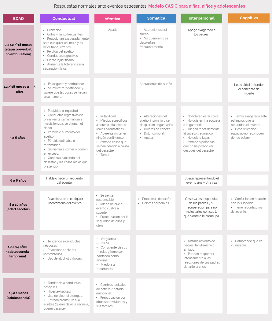 Respuestas normales ante eventos estresantes. Modelo CASIC para niñas, niños y adolescentes