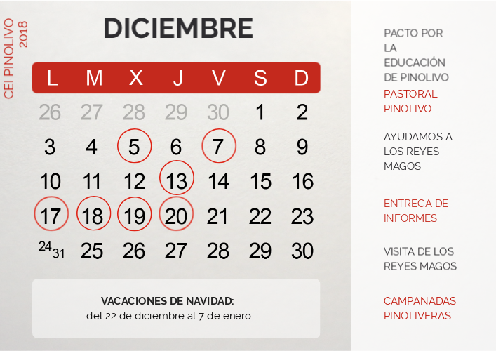 VACACIONES DE NAVIDAD: del 22 de diciembre al 7 de enero