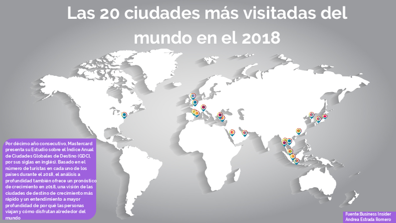 Por décimo año consecutivo, Mastercard presenta su Estudio sobre el Índice Anual de Ciudades Globales de Destino (GDCI, por sus siglas en inglés). Basado en el número de turistas en cada uno de los países durante el 2018, el análisis a profundidad también ofrece un pronóstico de crecimiento en 2018, una visión de las ciudades de destino de crecimiento más rápido y un entendimiento a mayor profundidad de por qué las personas viajan y cómo disfrutan alrededor del mundo