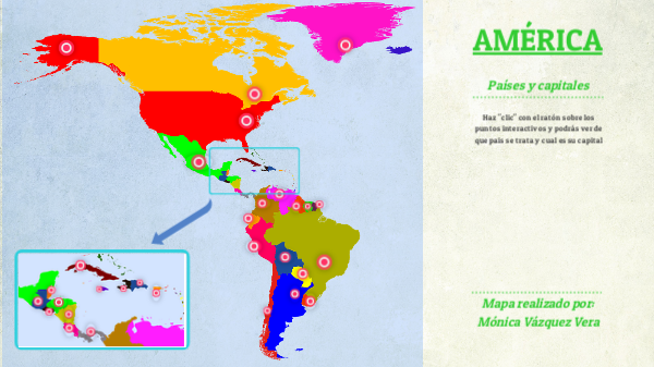 Haz "clic" con el ratón sobre los puntos interactivos y podrás ver de que pais se trata y cual es su capital