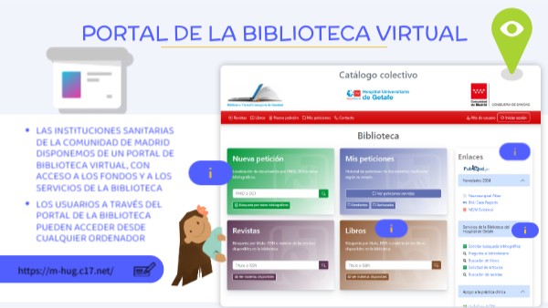 - Las instituciones sanitarias de la Comunidad de Madrid disponemos de un Portal de Biblioteca Virtual, con acceso a los fondos y a los servicios de la Biblioteca