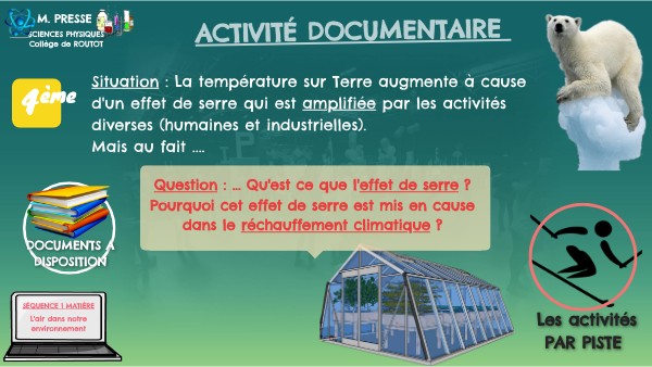 Situation : La température sur Terre augmente à cause d'un effet de serre qui est amplifiée par les activités diverses (humaines et industrielles). Mais au fait ....
