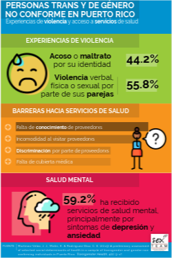 Martínez-Vélez, J. J., Melin, K. & Rodríguez-Díaz, C. E. (2019) A preliminary assessment of selected social determinants of health in a sample of transgender and gender non-confirming individuals in Puerto Rico. Transgender Health, 4(1), 9-17.