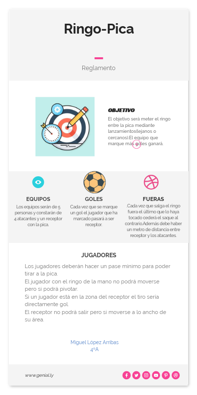 El objetivo será meter el ringo entre la pica mediante lanzamientos(lejanos o cercanos).El equipo que marque más goles ganará.
