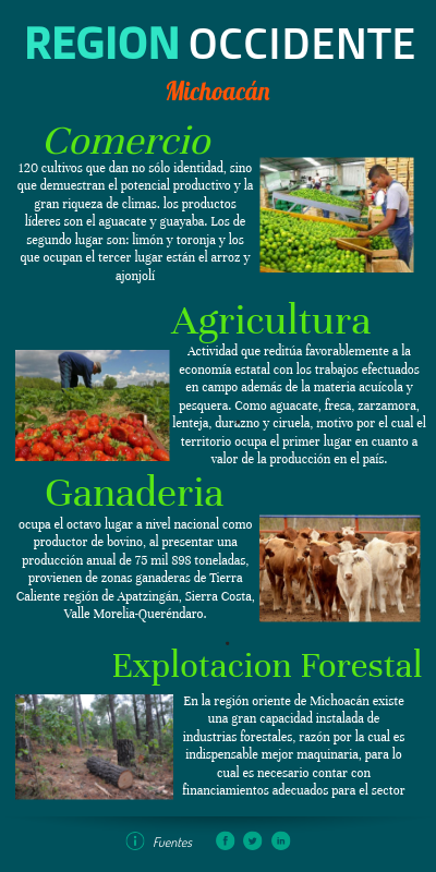 Actividad que reditúa favorablemente a la economía estatal con los trabajos efectuados en campo además de la materia acuícola y pesquera. Como aguacate, fresa, zarzamora, lenteja, durazno y ciruela, motivo por el cual el territorio ocupa el primer lugar en cuanto a valor de la producción en el país.