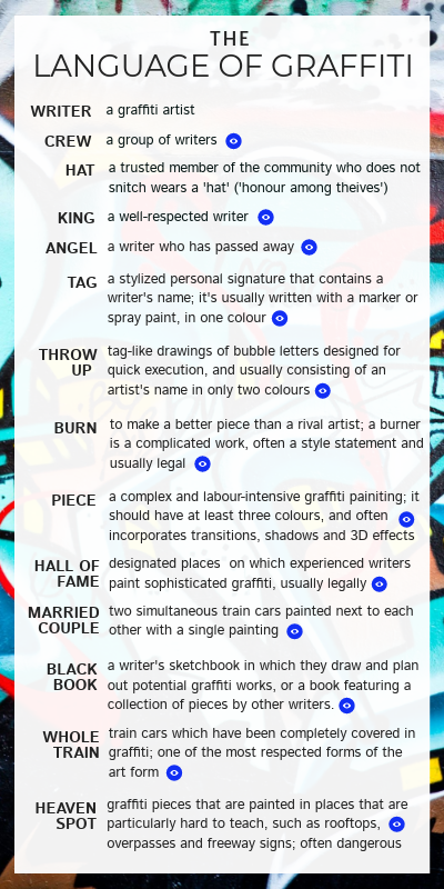 a stylized personal signature that contains a writer's name; it's usually written with a marker or spray paint, in one colour