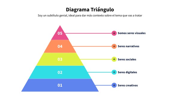 Utiliza esta plantilla gratis para crear diagramas triangulares de forma visual y organizada en tus informes, presentaciones o materiales educativos. Ideal para análisis de datos académicos o estructuración de información compleja. Personalízala y añade tu contenido fácilmente.