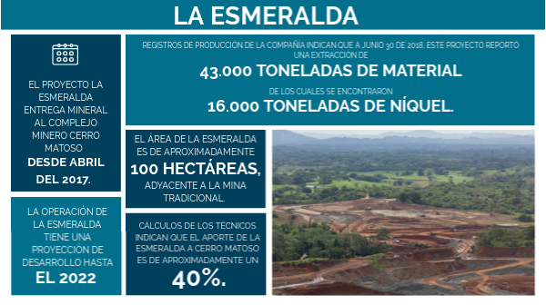 El proyecto La Esmeralda entrega mineral al complejo minero Cerro Matoso