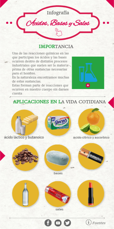 Una de las reacciones químicas en las que participan los ácidos y las bases ocurren dentro de distintos procesos industriales que suelen ser la materia prima de otras sustancias necesarias para el hombre.En la naturaleza encontramos muchas de estas sustancias. Estas forman parte de reacciones que ocurren en nuestro cuerpo sin darnos cuenta