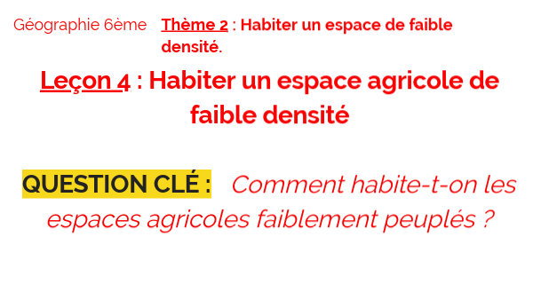 QUESTION CLÉ : Comment habite-t-on les espaces agricoles faiblement peuplés ?