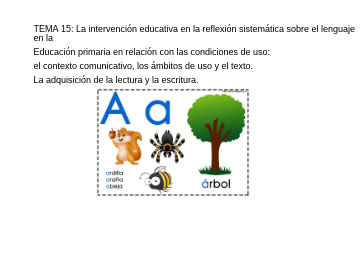 TEMA 15: La intervención educativa en la reflexión sistemática sobre el lenguaje en la Educación primaria en relación con las condiciones de uso: el contexto comunicativo, los ámbitos de uso y el texto. La adquisición de la lectura y la escritura.