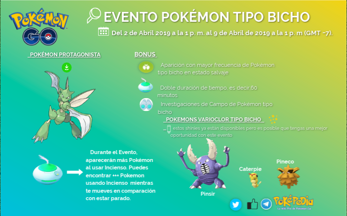 Evento Pokémon tipo bicho con Scyther de protagonista donde cabe la posibilidad de capturar por un tiempo determinado especies tipo-bicho con mayor spawn en estado salvaje y criaturas variocolor del mismo tipo.