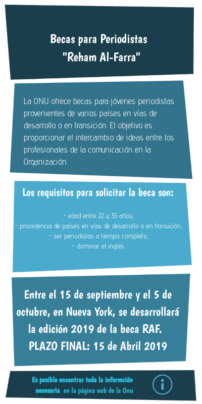 La ONU ofrece becas para jóvenes periodistas provenientes de varios países en vías de desarrollo o en transición. El objetivo es proporcionar el intercambio de ideas entre los profesionales de la comunicación en la Organización.