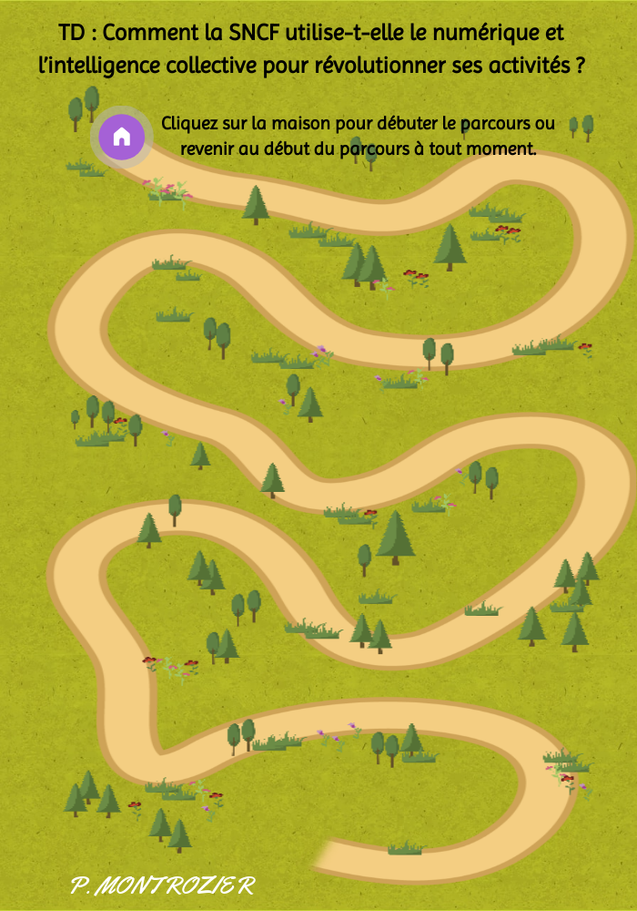 Dans le cadre de ce TD, vous allez être amené(e) à découvrir comment la SNCF intègre le numérique et l'intelligence collective afin de faire évoluer ses activités et assurer sa pérénnité. Chaque partie de ce TD repose sur la création d'une activité en lien avec votre cours, l'analyse de ressources ou des recherches à effectuer sur Internet. Munissez-vous de votre casque audio pour écouter les vidéos. Les réponses aux questions se feront sur un logiciel de traitement de texte de votre choix et le TD devra être déposé dans l'espace de dépôt prévu à cet effet.