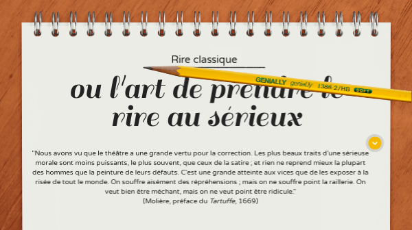 "Nous avons vu que le théâtre a une grande vertu pour la correction. Les plus beaux traits d'une sérieuse morale sont moins puissants, le plus souvent, que ceux de la satire ; et rien ne reprend mieux la plupart des hommes que la peinture de leurs défauts. C'est une grande atteinte aux vices que de les exposer à la risée de tout le monde. On souffre aisément des répréhensions ; mais on ne souffre point la raillerie. On veut bien être méchant, mais on ne veut point être ridicule."(Molière, préface du Tartuffe, 1669)