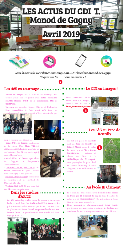 Voici la nouvelle Newsletter numérique du CDI Théodore Monod de Gagny. Cliquez sur les pour en savoir + !