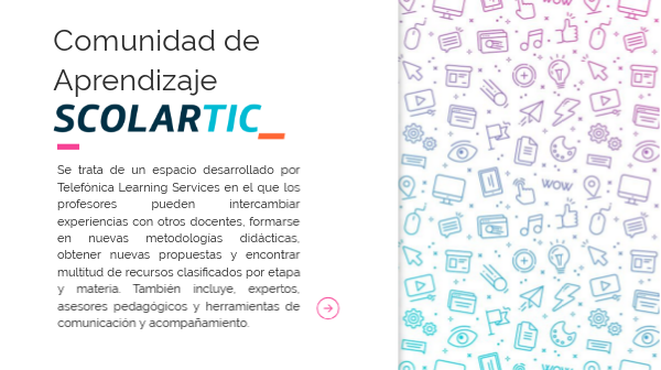 ScolarTIC es la primera Comunidad Educativa de ámbito hispano. Es un espacio social de aprendizaje, innovación y calidad educativa en el que se ofrecen cursos online gratis, recursos para el aula así como charlas, ponencias y talleres. Dirigido a docentes y futuros docentes.