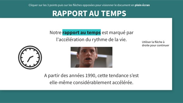 Notre rapport au temps est marqué par l'accélération du rythme de la vie. A partir des années 1990, cette tendance s’est elle-même considérablement accélérée.