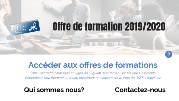 Consultez notre catalogue en ligne en cliquant directement sur les titres interactifs Retournez à tout moment au menu précédent en cliquant sur le logo de l'ISFEC Aquitaine