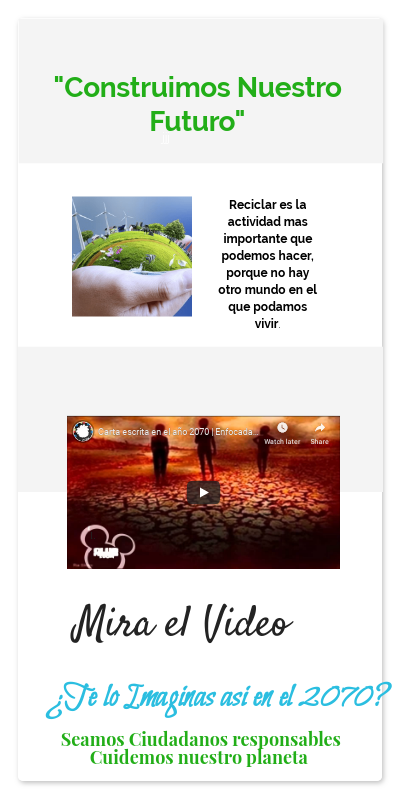 Reciclar es la actividad mas importante que podemos hacer, porque no hay otro mundo en el que podamos vivir.