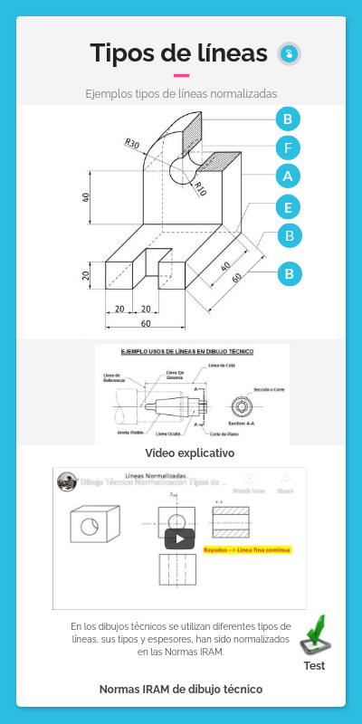 En los dibujos técnicos se utilizan diferentes tipos de líneas, sus tipos y espesores, han sido normalizados en las Normas IRAM.