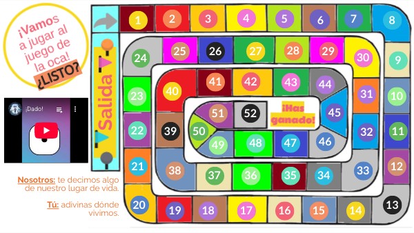 Nosotros: te decimos algo de nuestro lugar de vida. Tú: adivinas dónde vivimos.