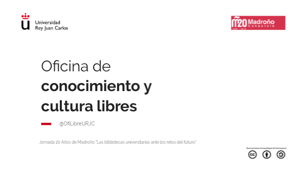 Oficina de Conocimiento y Cultura Libres. Universidad Rey Juan Carlos, Campus de Móstoles. Despacho 004, planta baja edificio Rectorado. C/ Tulipán s/n, 28933 Móstoles (Madrid) Correo electrónico: ofilibre@urjc.es Tel. 91 488 4679