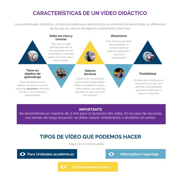 Para que un vídeo permita aprender, la estructuración de sus contenidos y mensajes debe ser lo más clara y breve posible.