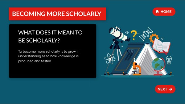 To become more scholarly is to grow in understanding as to how knowledge is produced and tested