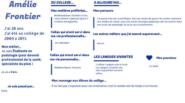 J'ai passé mon bac scientifique, fais une année de paces (1re année commune aux études de santé), puis une année de prépa podologie afin de rentrer dans une école de podologie (la où je suis actuellement)