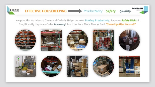 Keeping the Warehouse Clean and Orderly Helps Improve Picking Productivty, Reduces Safety Risks & Singificantly Improves Order Accuracy! Just Like Your Mom Always Said "Clean Up After Yourself"