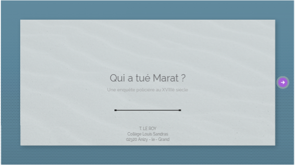 Bonjour, je suis l'inspecteur de Gendarmerie en charge de l'enquête sur la mort de Marat. Nous allons élucider cette enquête ensemble !