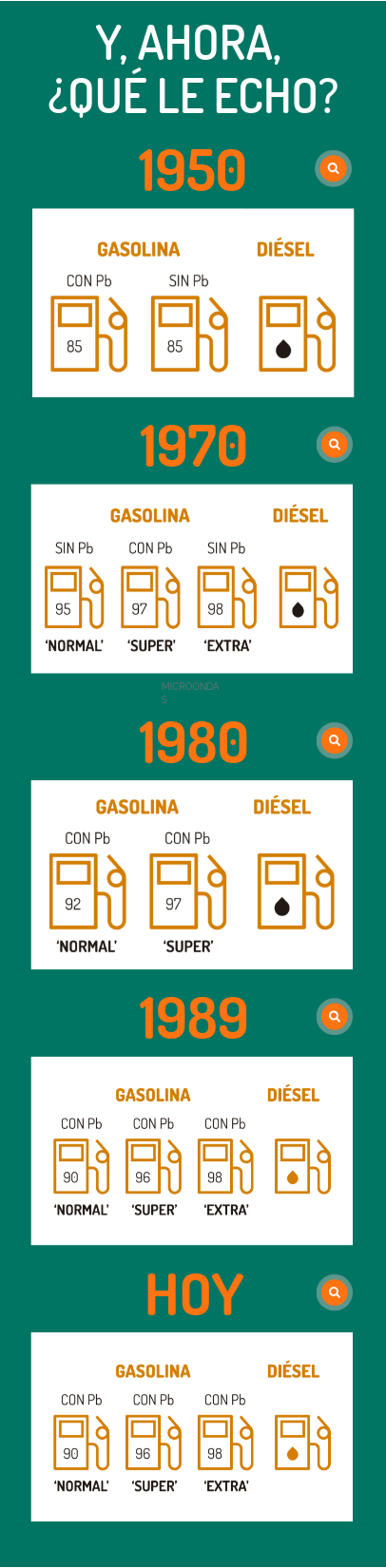 Los motores aumentan el octanaje: la gasolina normal pasa a 92 oct, y la súper, a 97. Ambas mantienen el plomo. La extra 98 desaparece del surtidor.