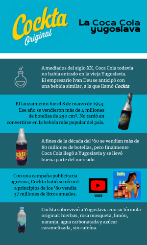 A mediados del siglo XX, Coca Cola todavíano había entrado en la vieja Yugoslavia. El empresario Ivan Deu se anticipó con una bebida similar, a la que llamó Cockta